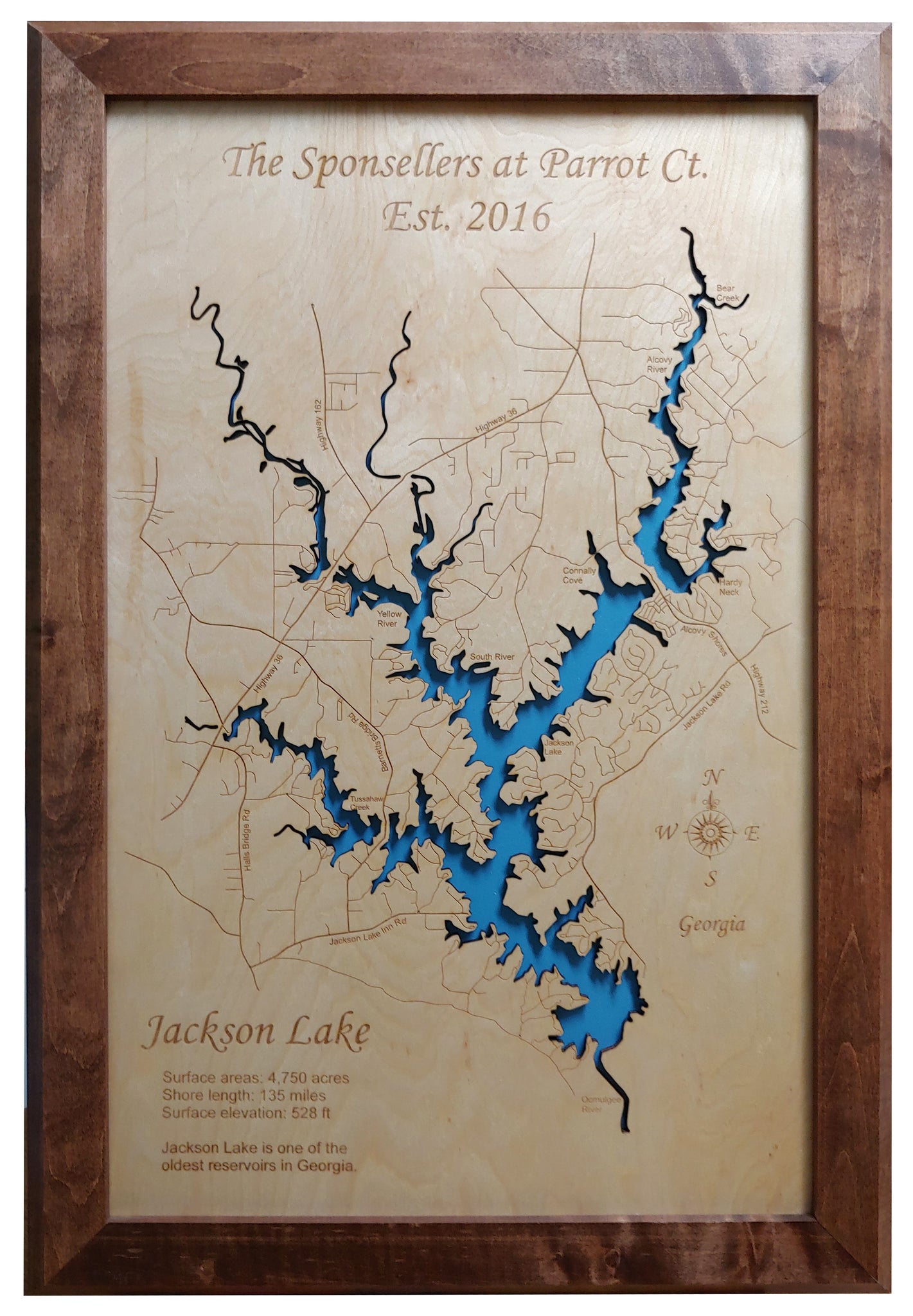 Jackson Lake, Georgia Laser Cut Wood Map| Personal Handcrafted